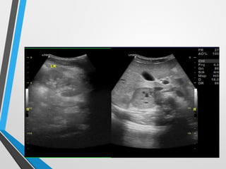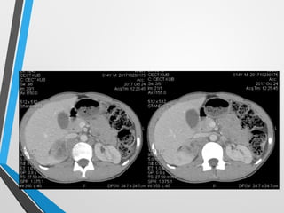 The document presents a case study of a 14-year-old boy diagnosed with pheochromocytoma after experiencing severe hypertension and fainting. Initial ultrasound and subsequent CT scans indicated the presence of solid masses in the adrenal glands and renal hilum, prompting further investigation for urinary catecholamines. Pheochromocytoma is a neuroendocrine tumor of the adrenal gland that can cause significant cardiovascular symptoms due to excessive catecholamine secretion.