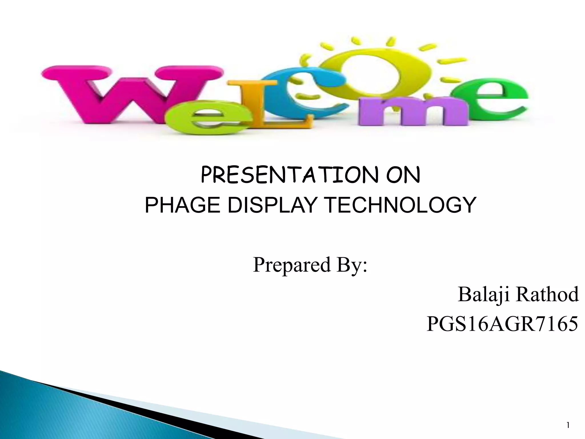 Phage display technology allows the display of proteins or peptides on the outside of bacteriophages while encoding the corresponding gene on the inside. This allows for large libraries to be screened in vitro to select for interactions between the displayed molecules and a target. The most common phages used are filamentous phages like M13, which can be genetically manipulated to display proteins of interest. The technique involves inserting a gene into the phage coat protein gene, infecting bacteria to produce phage particles displaying the protein, and panning against a target to isolate interacting proteins.