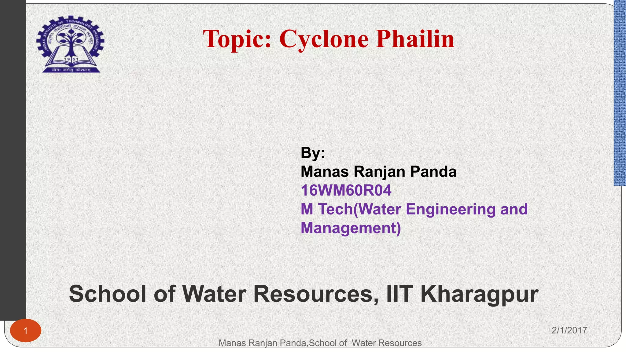 Very Severe Cyclonic Storm Phailin struck Odisha and Andhra Pradesh in India in October 2013. It caused widespread damage through strong winds up to 215 kmph, heavy rainfall leading to flooding, and a storm surge along the coast. Over 1.2 million people were evacuated in Odisha alone in the largest evacuation effort in India in over 20 years. The storm destroyed homes and crops, but early warnings and emergency preparations helped minimize loss of life to around 38 people across the affected areas.