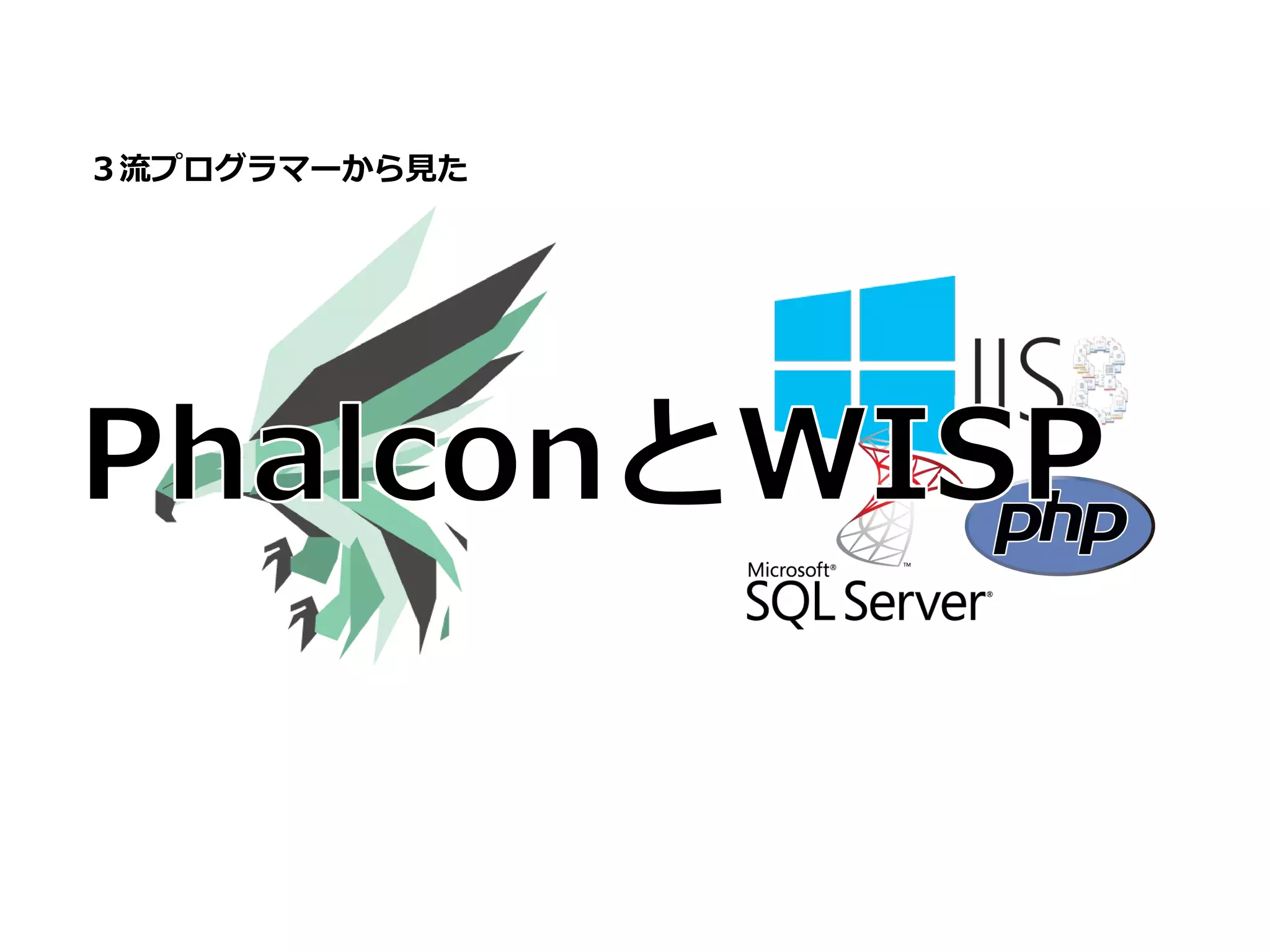 そういう仕事しかできない3流プログラマー だからこそ、 PhalconとWISPがちょうどよかった、 というお話をさせていただきます ので 今ご覧になっている1流の皆さまには何の 参考にもならない内容になることをあらかじ めご容赦ください。