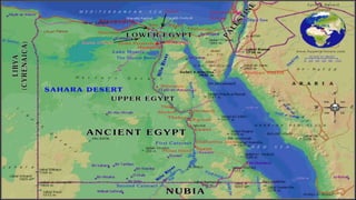 Pharaohs were the political and religious leaders of ancient Egypt, holding the titles of "Lord of the Two Lands" and "High Priest of Every Temple." The word "pharaoh" comes from the Egyptian word for the royal residence, which became associated with the ruler. Pharaohs ruled Egypt at the same time its hieroglyphic writing system was developed between 3100 BCE and 400 CE. Ancient Egyptians wore simple linen garments, with pharaohs and men wearing wrap around skirts and women wearing sheath dresses. Religious traditions grew more prominent over time in Egypt and included beliefs about the afterlife and funerary practices like pyramid tombs for pharaohs, the most