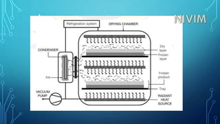 This document provides an overview of various drying techniques used in pharmaceutical engineering. It discusses the objectives, mechanisms, and principles of operation for common dryers like tray dryers, drum dryers, spray dryers, fluidized bed dryers, vacuum dryers, and freeze dryers. The document also covers topics like drying applications, measurements of equilibrium moisture content, and rate of drying curves. Overall, it serves as a comprehensive introduction to drying as a crucial process in pharmaceutical manufacturing.