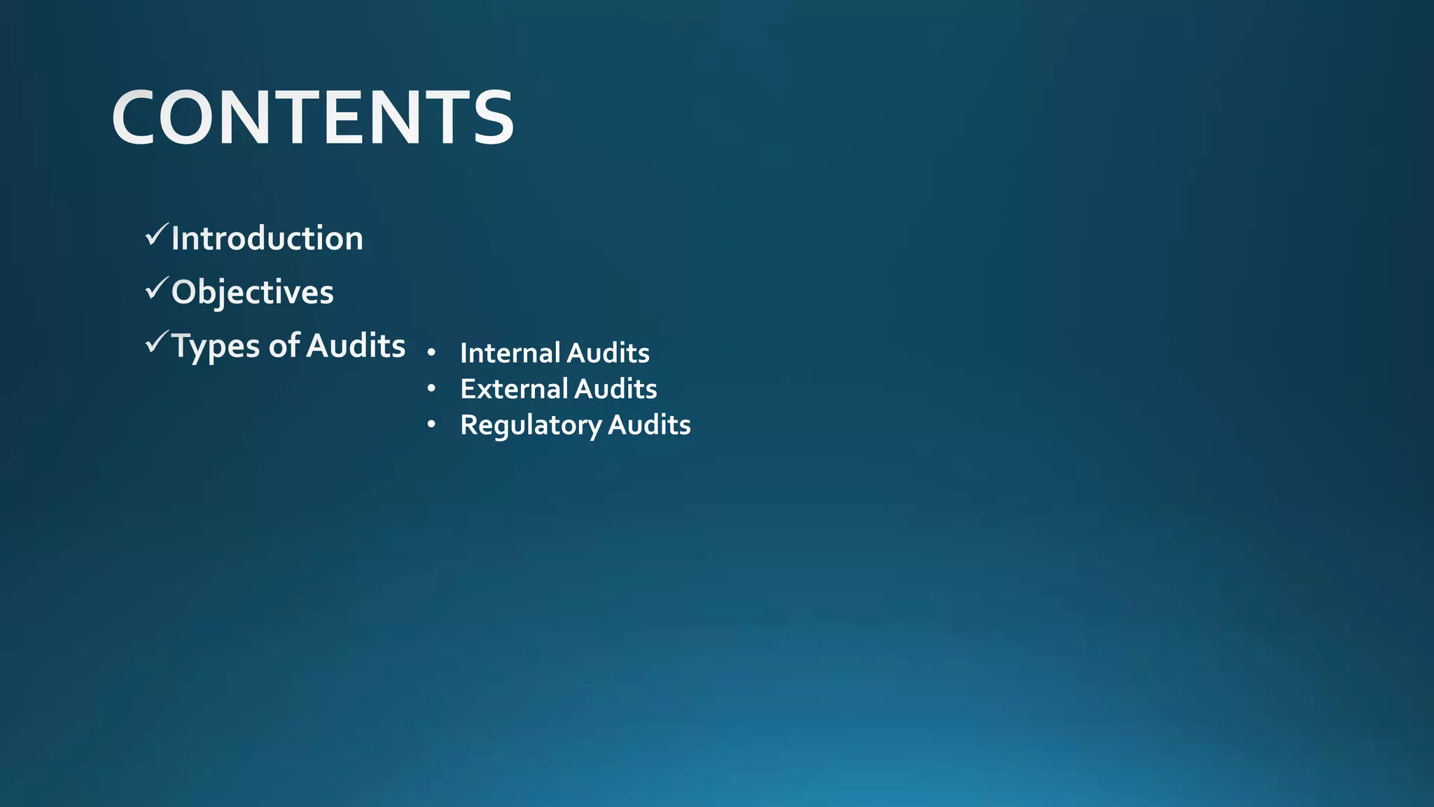 The document outlines the introduction, objectives, and types of pharmaceutical quality audits, prepared by Aditya Sharma from NIPER Guwahati. It categorizes audits into internal, external, and regulatory types. The content suggests focusing on quality assurance in the pharmaceutical industry.