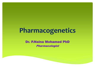 Pharmacogenetics is the study of how genetic variations influence drug effects and adverse reactions, impacting drug metabolism, response, and safety. With the FDA's guidance and numerous drugs' labeling reflecting pharmacogenetic discoveries, it highlights the critical role of genetics in personalized medicine. Pharmacists play an essential role in applying pharmacogenetic insights in clinical settings, emphasizing the need for individualized healthcare based on patients' genetic information.