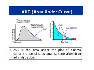 This document discusses various pharmacokinetic concepts including absorption, distribution, metabolism, and excretion of drugs. It describes how drugs are absorbed through various routes and distributed throughout the body. Factors that influence bioavailability such as drug properties, formulation, and first-pass metabolism are examined. The document also explores drug metabolism through phase I and II reactions in the liver and how metabolites are excreted primarily through the kidneys or feces. Teratogenic drugs and drugs contraindicated during pregnancy or breastfeeding are highlighted.