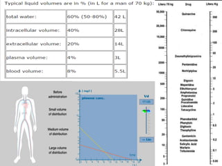 3. Key pharmacokinetic parameters like volume of distribution, elimination rate constant, half-life, and clearance can be calculated from compartmental model equations to quantify a drug's absorption, distribution, metabolism, and excretion.
