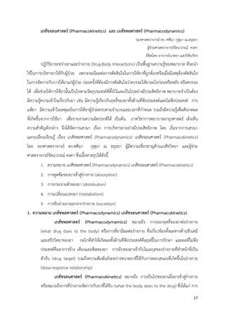 17 เภสัชจลนศาสตร์ (Pharmacokinetics) และ