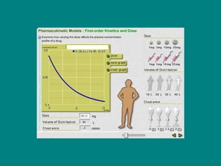 This document summarizes key aspects of drug excretion from the body. It discusses excretion through the kidneys including glomerular filtration and tubular secretion. It also covers biliary excretion through the liver and factors that influence the various orders of excretion such as zero-order and first-order kinetics. The concepts of half-life, clearance, volume of distribution, bioavailability and achieving steady-state concentrations with repetitive dosing are defined. Considerations for dosing adjustments in renal disease are provided.