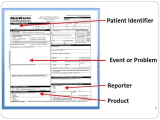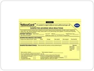 Pharmacovigilance is the science of monitoring the safety of pharmaceutical drugs. It aims to improve patient care, public health, and understanding of medication risks. The need for formal pharmacovigilance arose from tragedies like the deaths from chloroform in 1848 and the thalidomide disaster in the 1960s, which caused birth defects. This led to the establishment of organizations like the WHO Programme for International Drug Monitoring in 1968 to systematically collect and analyze reports of adverse drug reactions.