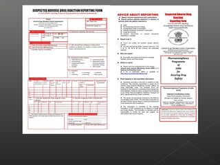 This document discusses various aspects of pharmacovigilance including its aims, responsibilities, methods, governing bodies, adverse drug reactions, terminology, and international programs. The key goals of pharmacovigilance are to improve patient safety, contribute to benefit-risk assessments of medicines, and ensure their rational use. It involves the detection, assessment, understanding and prevention of adverse drug reactions using methods like spontaneous reporting, cohort event monitoring, and record linkage. Regulatory authorities and the WHO play important roles in governing pharmacovigilance activities globally.