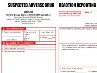 Pharmacovigilance involves monitoring approved drugs to detect adverse effects, assess risks, prevent harm and promote safe use. It aims to improve public health by identifying unknown risks from case reports and studies. Several methods are used including spontaneous reporting, active surveillance and observational studies. Organizations like WHO and regulatory authorities play important roles in pharmacovigilance. The goal is continual assessment of benefit-risk profiles to optimize treatment outcomes.
