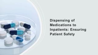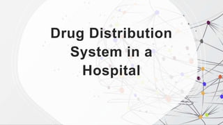 The document outlines the comprehensive drug distribution system in hospitals, detailing the processes from medication order entry to dispensing and administration. It emphasizes the roles of pharmacists, the importance of patient safety through barcoding, and medication reconciliation to ensure accuracy. Additionally, it covers aspects of patient education, billing policies, therapeutic drug monitoring, and the need for adherence to medication regimens, while distinguishing between different drug distribution systems and formulary management.