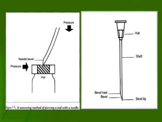1) Aseptic technique involves procedures to keep sterile products contamination-free. IV is the most common parenteral route of drug administration today.