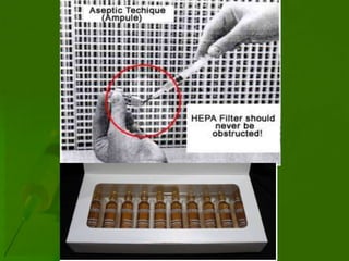 This document provides information about aseptic techniques for intravenous (IV) preparation: