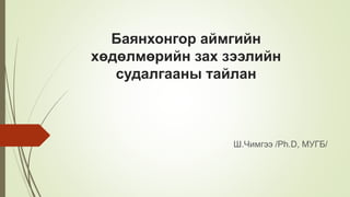 Баянхонгор аймгийн хөдөлмөрийн зах зээлийн судалгааны тайлан Ш.Чимгээ /Ph.D, МУГБ/