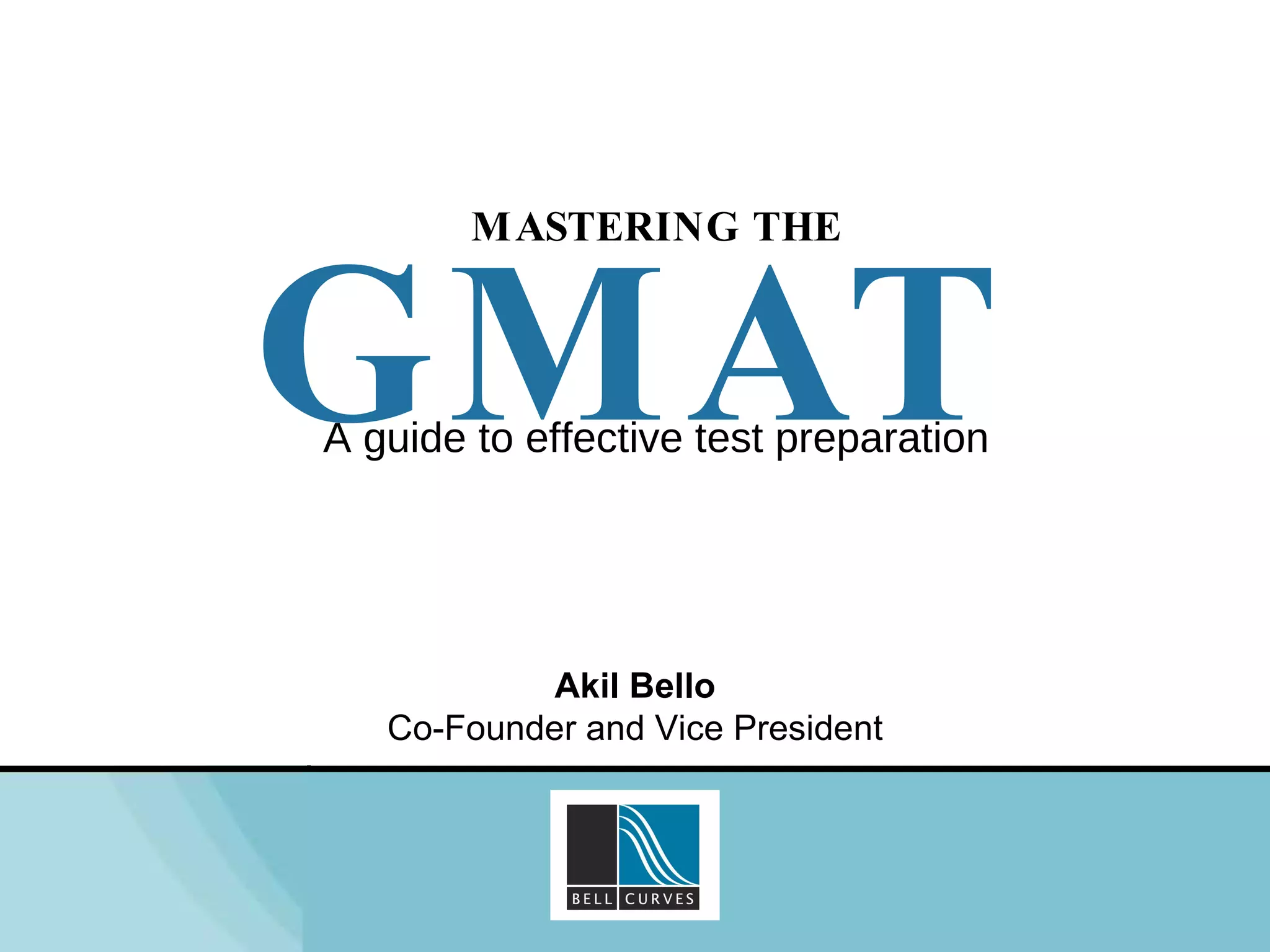 The document provides guidance on effective preparation for the GMAT exam. It recommends learning about the exam format and structure, building knowledge of the content areas tested, and understanding one's strengths and weaknesses as a test-taker. Specific tips include learning the rules and formulas tested in each section, practicing with strategies tailored for different question types, and developing a study plan that plays to an individual's pacing and strengths. Understanding all aspects of the exam and oneself as a test-taker is key to achieving the best possible score.