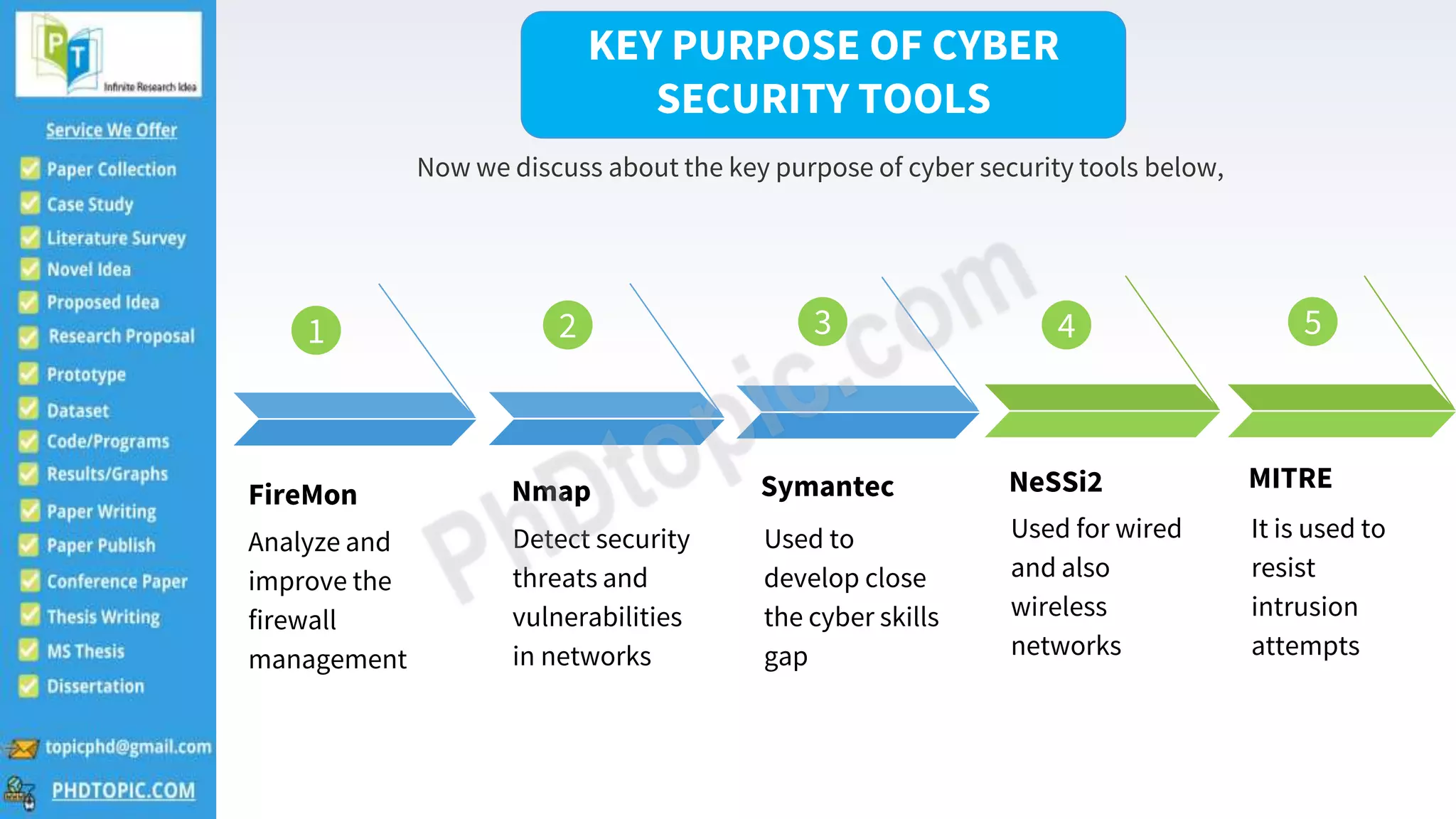 The document provides guidance on pursuing a PhD in cyber security, outlining key tools and their purposes, such as FireMon, Nmap, and Mitre. It highlights upcoming developments in the field, including threat intelligence and blockchain security, as well as notable research areas for scholars like mobile systems and cloud computing. Contact information for further inquiries is also included.