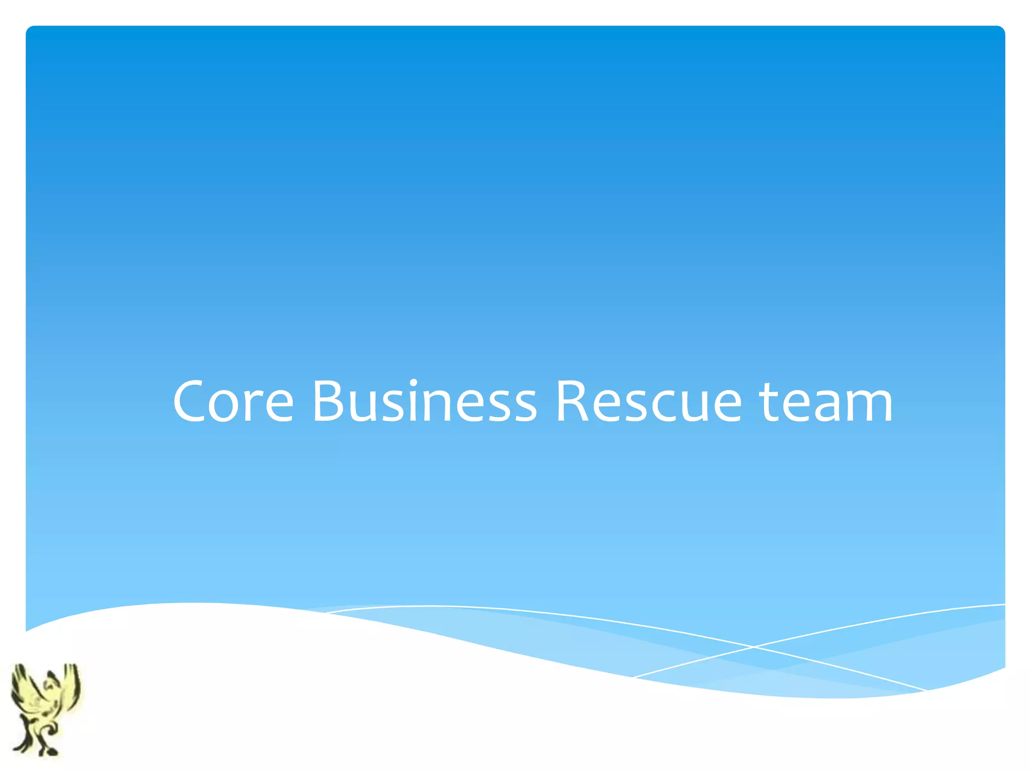 This document discusses Core Business Rescue, a team that helps companies in distress. It outlines their approach over several days to stabilize a business and set it up for longer term success. They focus on improving the business model, financial controls, project planning, sales, taxes, metrics, and continuous improvements. Their goal is to restructure the business, get it profitable again, and eventually facilitate its sale so investors can realize returns and previous owners can realize value from the distressed company. The document provides details on their team and the process they use to rescue struggling businesses.