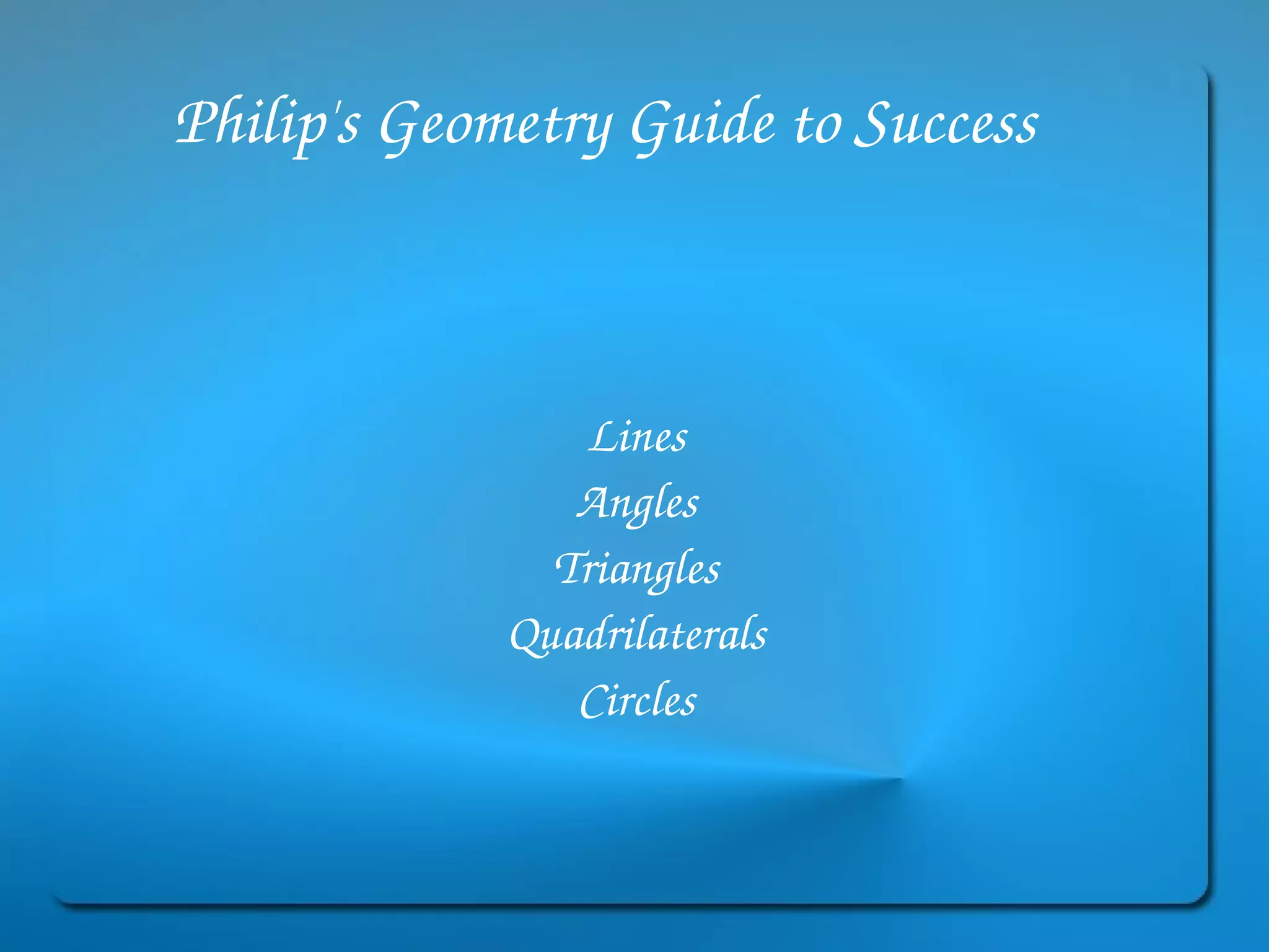 This document provides definitions and explanations of key geometry terms related to lines, angles, triangles, quadrilaterals, circles, and other polygons. It defines points, line segments, rays, intersecting lines, perpendicular lines, parallel lines, acute angles, obtuse angles, right angles, complementary angles, supplementary angles, and more. It also explains the properties of different types of triangles, quadrilaterals, circles, and other polygons. Key terms include radius, diameter, chord, arc, sector, circumference, area, perimeter, scalene triangles, isosceles triangles, equilateral triangles, rectangles, squares, rhombuses, trapezoids, parallelograms, hexagons, octagons