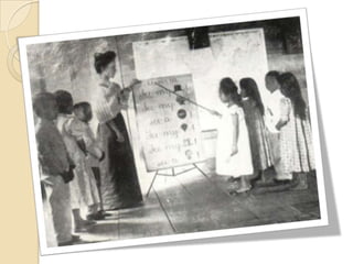 The document discusses philosophical education in the Philippines during different historical periods. It covers education during the American period (1901-1941), the Japanese period (1941-1945), and after the declaration of martial law. Some key points are: the American period emphasized English education and a US-style school structure; the Japanese period focused on moral character and citizenship duties per the 1935 Constitution; and martial law-era education aimed to develop love of country and technical/vocational skills according to the 1973 Constitution.