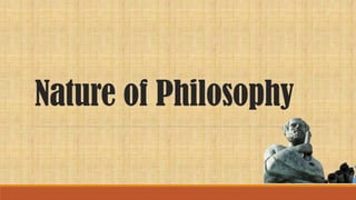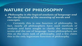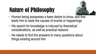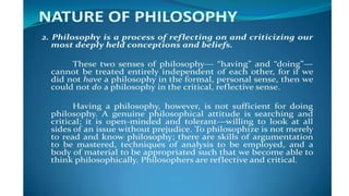• Philosophy isa reflective activity-it tends to critically reflect on its own