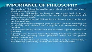 • Philosophy is a distinct area of knowledge with its own goals, concerns and