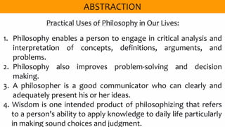 • finally, the need to philosophize is driven by the love of wisdom.