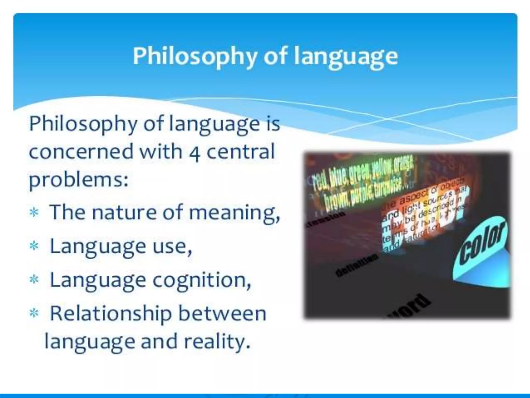 The document explores the philosophy of language, addressing the origins, nature, and meaning of language, as well as its relationship with thought and reality. It discusses various theories on linguistic meaning, such as idea, truth-conditional, use, and reference theories, while also examining the Sapir-Whorf hypothesis which posits that language influences thought and perception. Additionally, it highlights the debates around language learning and the interplay between language and culture.