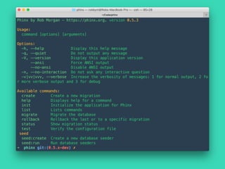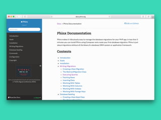 Rob Morgan discusses Phinx, a schema migration tool that allows for programmatically updating or reverting database schemas. Launched in 2012, Phinx has become popular, with 900k downloads, supporting various databases, and simplifying migration management using PHP. Future developments include a lightweight ORM API and enhanced documentation.