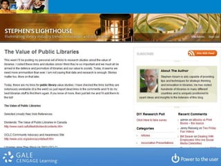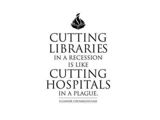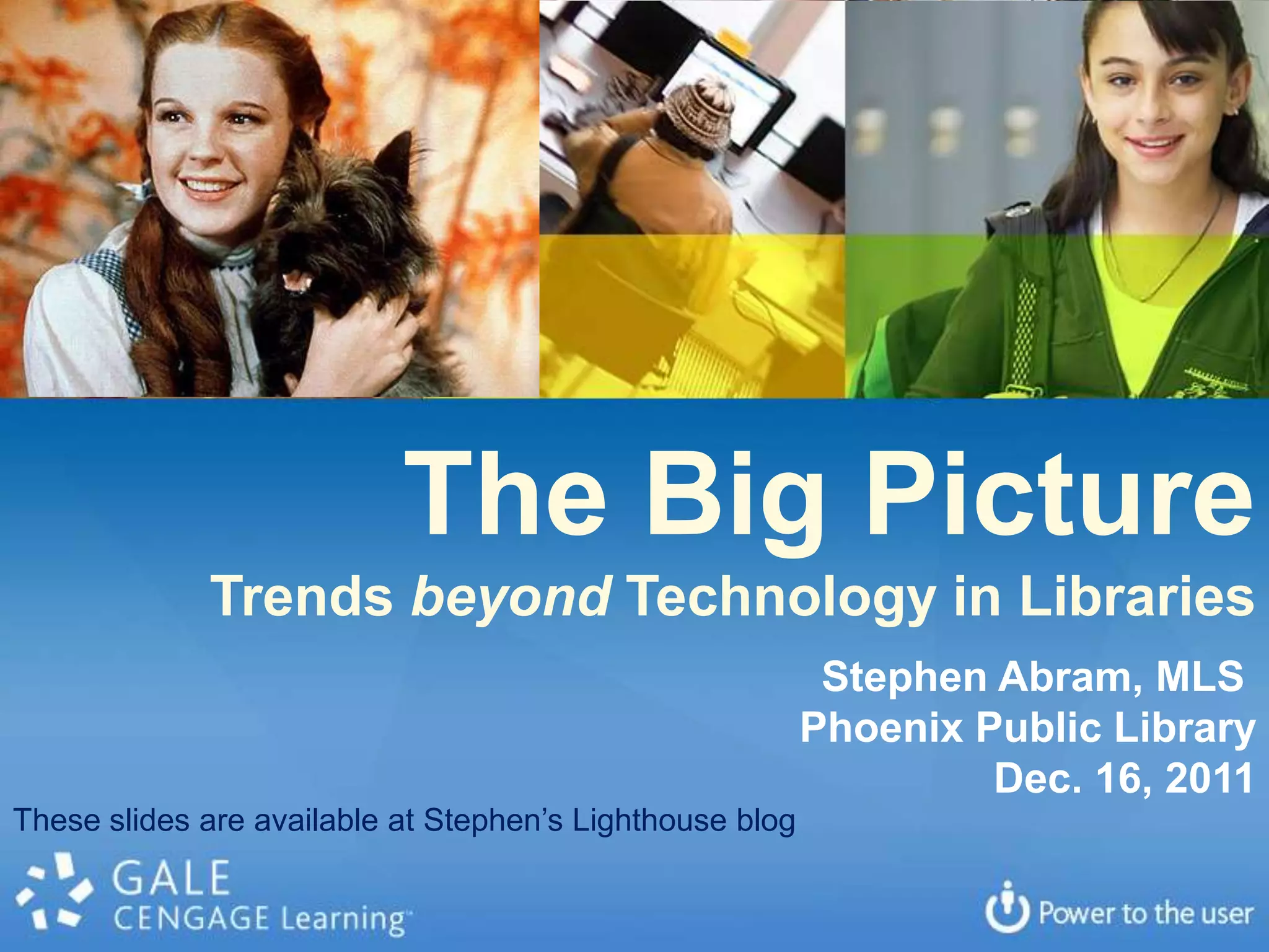 This document summarizes Stephen Abram's presentation on trends beyond technology in libraries. It discusses symptoms of dysfunction in libraries, challenges from ebooks and new technology, and the need for libraries to be future ready. It also addresses changing demographics in library staffing, focusing services around user questions rather than collections, and developing knowledge portals rather than focusing on books. The presentation emphasizes the importance of advocacy, analytics, collaboration, and storytelling in demonstrating the value of libraries.