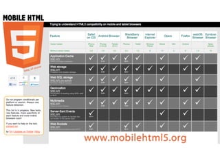 Max Firtman is a mobile and web developer based in Buenos Aires, Argentina. PhoneGap is an open source framework that allows building cross-platform mobile apps using HTML, CSS, and JavaScript. It works by packaging web apps so they can be deployed and run as native mobile applications. PhoneGap supports many mobile platforms but each still requires separate compilation. Debugging mobile web apps can also be challenging. The speaker provides advice around maintaining a single codebase, embracing platform differences, and focusing on performance and the best experience for each context.