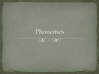 The document lists English words containing the vowel sounds /æ/ and /a/. For each vowel sound, it provides 2-3 example words. In total, it shows about 30 words divided between the two vowel categories.
