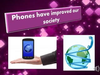Phones have a positive impact on society according to surveys. 83% of respondents agreed that phones improve the world. Most people said they would struggle without their phone for everyday tasks like work, communication with friends and family, and safety. Approximately 74% of people use their phone for over an hour per day. The majority of respondents reported using their phone for 1-2 hours or 3-4 hours per day. Phones are the most popular device for both adults and teens, with around 80% of society owning a cell phone. In conclusion, phones are generally beneficial for people and society would have difficulty functioning without widespread phone access and usage.