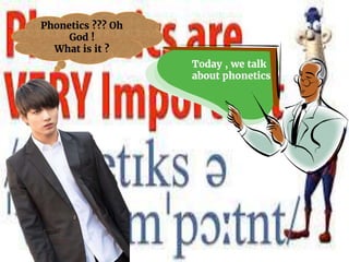 This document provides an overview of phonetics, which is the study of speech sounds and their production, perception, and physiology. It discusses phonetics as a science that focuses on the smallest units of language. The document then describes the three main branches of phonetics: acoustic (sound waves), auditory (perception), and articulatory (production). It goes on to explain places and manners of articulation, identifying different speech sounds based on where and how they are produced in the vocal tract. Various speech sounds are defined using phonetic symbols. In closing, the document provides references for further reading on linguistics and phonetics.