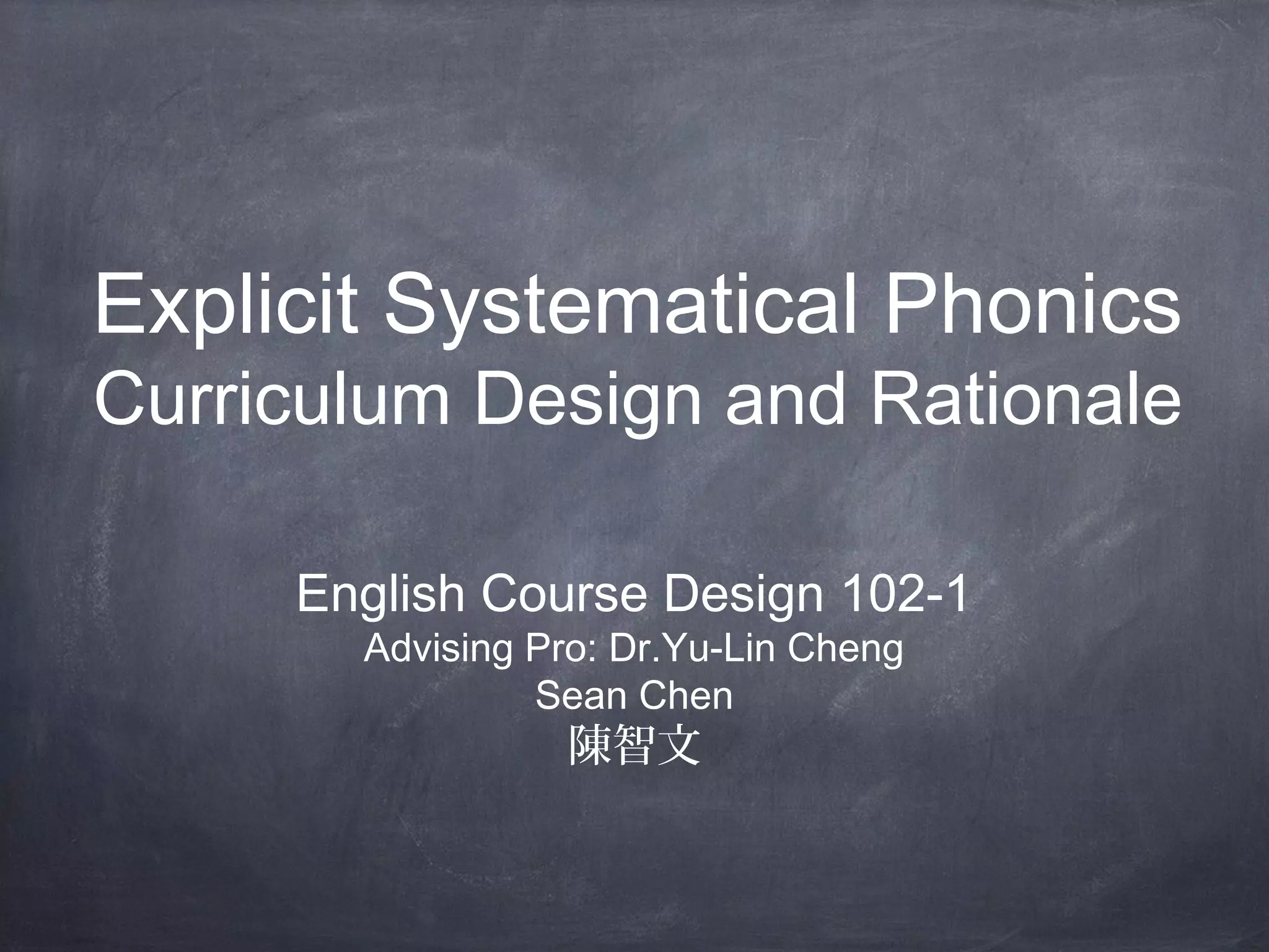 This curriculum aims to teach 4th-5th grade EFL students phonics skills like r-controlled vowels and vowel pairs over 5 weekly lessons. The objectives are for students to read words with these phonics patterns correctly on an individual assessment. The curriculum follows a synthetic phonics approach and uses resources like Elkonin sound boxes, videos, and readers. Assessment involves a word reading test to evaluate decoding of targeted phonics patterns.