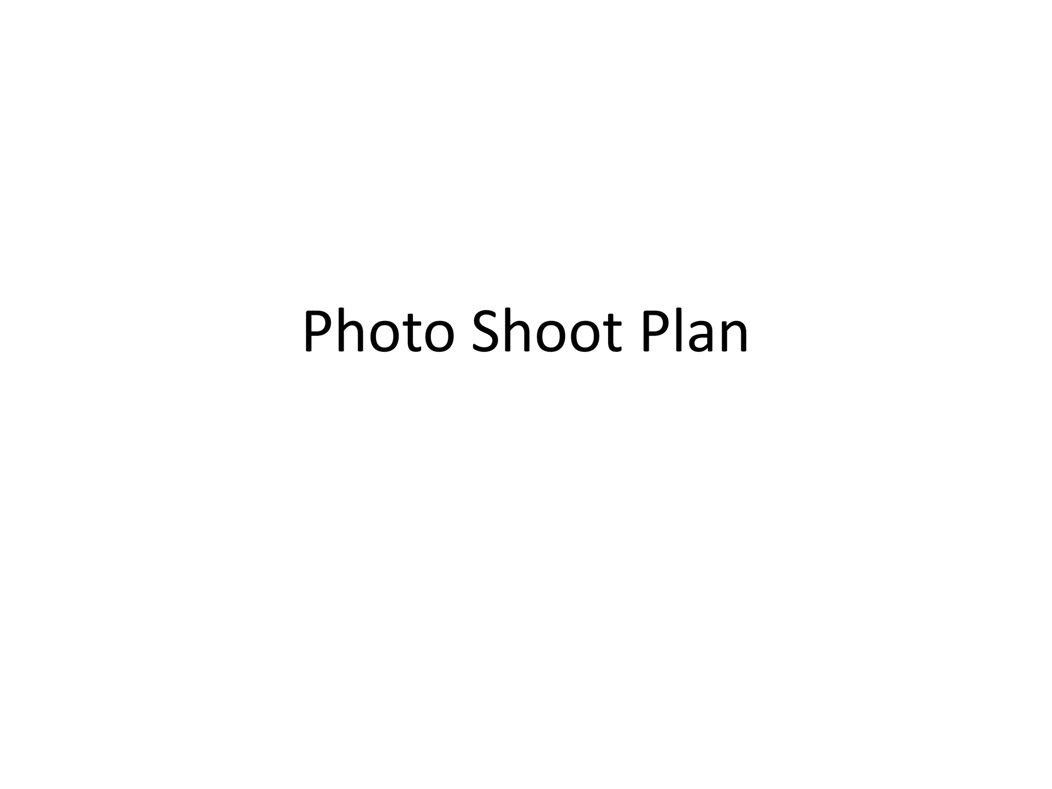 The photo shoot plan outlines details for a rock band cover shoot on November 22nd. The shoot will take place from 4-6pm in Warrington at Golden Square, where the photographer Shannen Godwin and the band will meet. The band is to dress casually in rocky clothes with messy hair and bring a guitar prop. The photographer will bring a camera and possibly a tripod to capture images for the cover, contents page, and a double page spread.