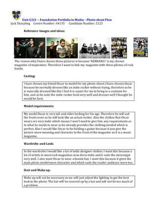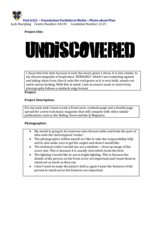 1) The document is a photo shoot plan for the front cover of a new rock music magazine.