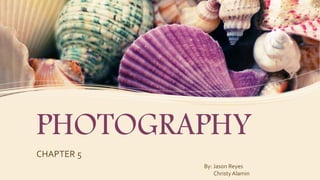 This document provides an overview of photography, including its history, development, uses, and key concepts. It discusses how photography evolved from early camera obscura techniques to the invention of the first photographic processes in the 1800s to the development of digital photography in the 1970s. The document also outlines different types of photography such as landscape, wildlife, and forensic photography. It describes the basic parts and features of a camera and defines other important photography terms.