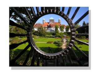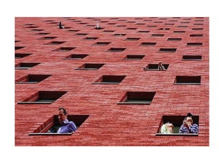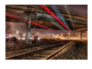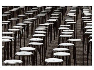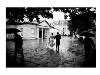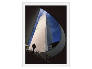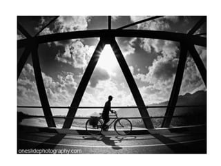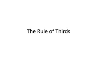 The document discusses several photography composition techniques including the rule of thirds, leading lines, symmetry and patterns, depth of field, framing, and viewpoint. The rule of thirds involves dividing an image into thirds both horizontally and vertically and positioning key elements of the photo along those lines. Leading lines draw the eye through a photo along lines in the composition. Symmetry and patterns can make eye-catching photos when used or broken intentionally. Depth of field and overlapping objects create a sense of depth in two-dimensional photos. Framing isolates the subject using natural frames. Viewpoint, such as bird's eye or worm's eye views, impacts the message conveyed.