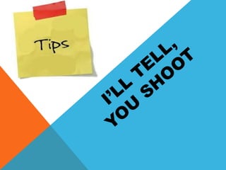 This document provides information about photojournalism. It defines photojournalism as using images to tell news stories rather than words. It captures the human experience to convey truth and insight to viewers. Elements of photojournalism include timeliness, objectivity, and narrative. Branches discussed are documentary photography, social documentary, street photography, and celebrity photography. Tips are provided such as avoiding posed shots, capturing emotion, getting faces not backs, identifying the subject, using different angles and the rule of thirds. The document emphasizes the moral responsibility of photojournalists to decide what images to show and respect people's privacy.