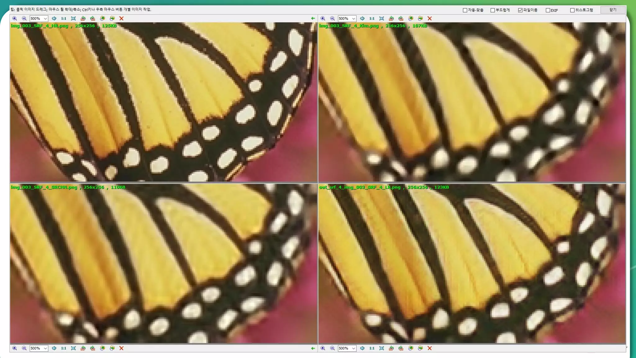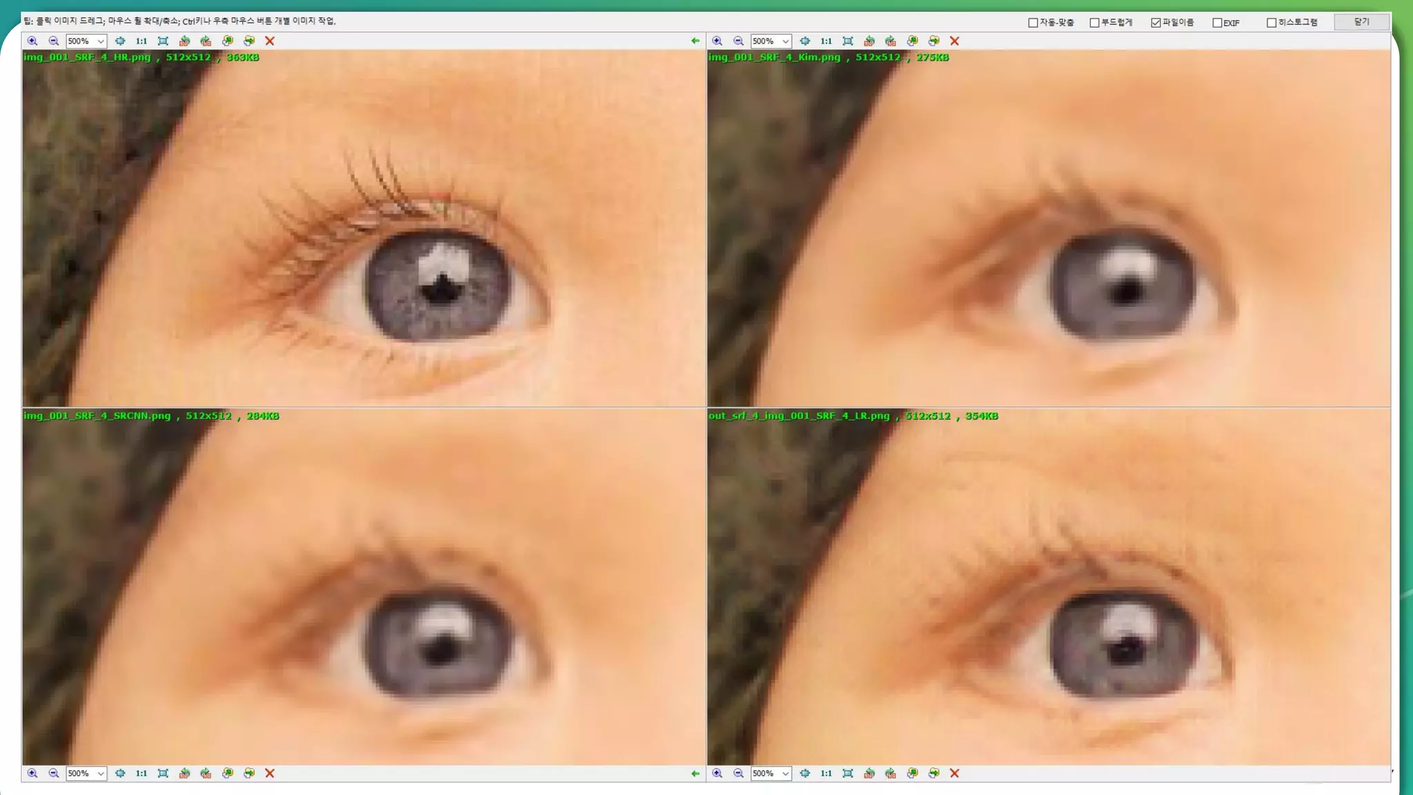 • ResNet 구조와GAN 구조를 SR에 적용하여 객관적 지표인 PSNR, SSIM를 일정 수준 확보하면서