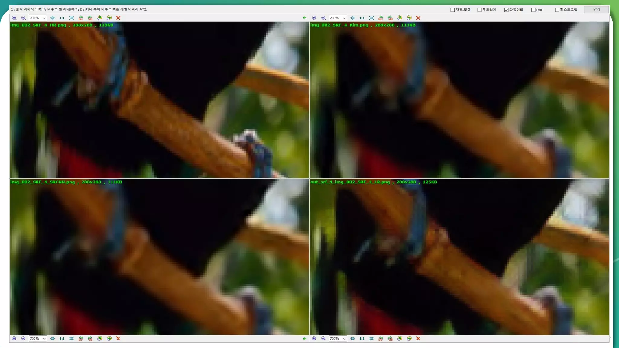 * 실험 결과는 미리 학습된 네트워크(ep:100, r:4)를 사용함. - https://github.com/leftthomas/SRGAN)