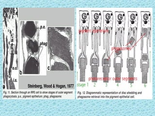- Photoreceptor outer segments contain visual pigment discs that are renewed through the addition of new discs and removal of old discs via phagocytosis.