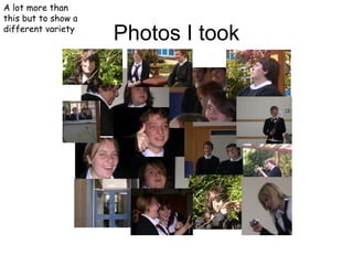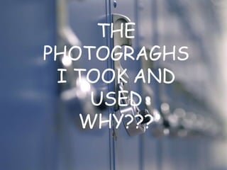The photographer selected specific photos for the front cover and contents page of a school magazine to portray a positive image of the school. A photo of students giving a thumbs up was chosen for the cover because it showed student achievement while also making the school seem approachable. Photos of happy students participating in activities were selected for the contents page to demonstrate the cheerful atmosphere and things students can learn or do at the school. The goal was to use images that portrayed the school and students in a friendly, upbeat manner.