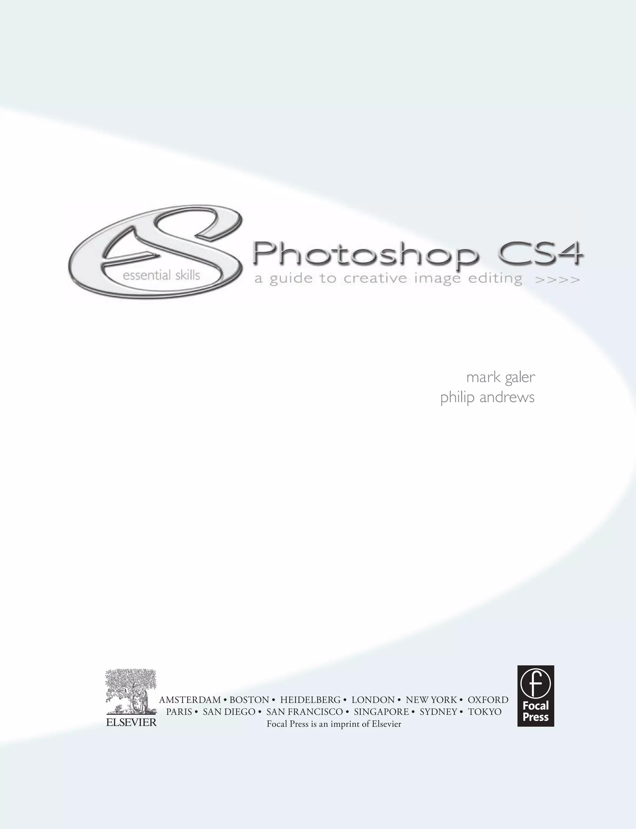 This book provides a structured learning approach to teach essential Photoshop skills, with modules progressing from basic techniques to advanced applications like retouching and compositing, supported by a DVD with project files and tutorials to help acquire and apply new skills through practical tasks. The goal is to equip photographers and designers with the digital darkroom skills needed for creative image editing and preparation for print and screen-based output.