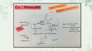 The document provides an overview of photosynthesis, explaining its definition, requirements, and importance as a fundamental process for life on Earth. It details the mechanisms involved, including light and dark reactions, photosystems, and pathways such as the Calvin cycle, C4 pathway, and CAM pathway, as well as the roles of various pigments. The document also addresses photorespiration and its implications for certain plant types under stress conditions.