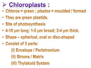 The document provides a comprehensive overview of photosynthesis, detailing the structures involved such as chloroplasts, thylakoids, and various pigments including chlorophyll and carotenoids. It describes the light reactions and dark reactions in photosynthesis, specifically the processes occurring in Photosystems I and II, and how energy from light is captured and converted into chemical energy. Additionally, it covers the Calvin cycle and the C4 photosynthetic pathway, highlighting the differences between mesophyll and bundle sheath cells in C4 plants.