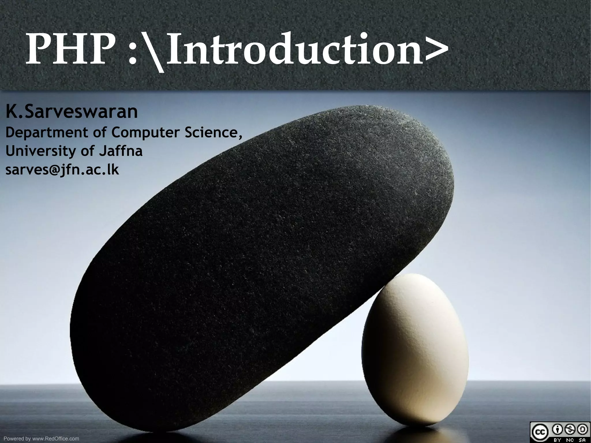 This document provides an introduction to PHP, including: