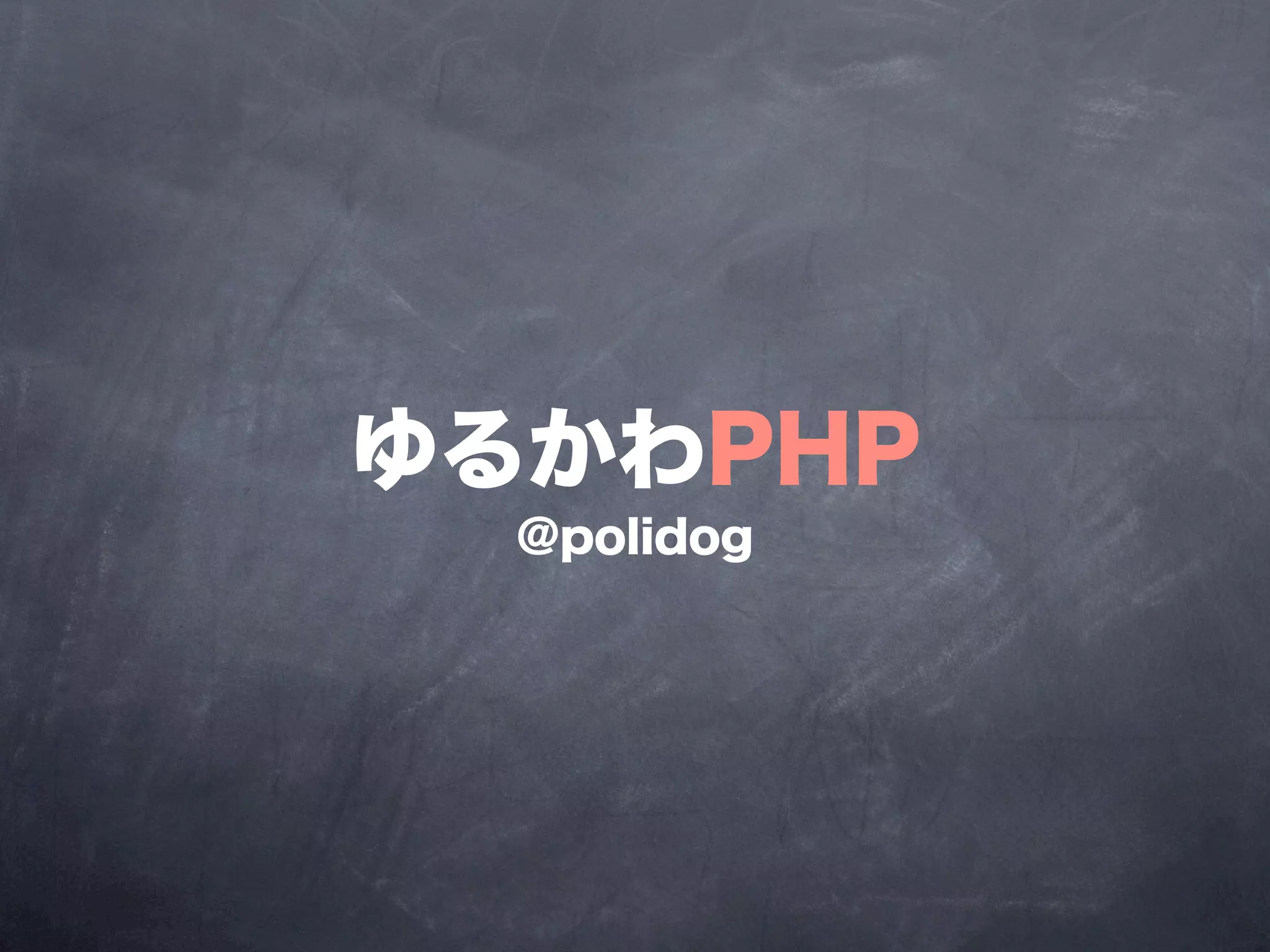 66. 67. 68. 69. 70. 71. 72. 73. 75. 76. 77. 78. 79. 80. 81. 82. 83. Editor's Notes #2 &#x306F;&#x3044;&#x3067;&#x306F;&#x3001;&#x65E9;&#x901F;&#x3086;&#x308B;&#x304B;&#x308F;PHP&#x306E;&#x65B9;&#x3092;&#x59CB;&#x3081;&#x3066;&#x884C;&#x304D;&#x305F;&#x3044;&#x3068;&#x601D;&#x3044;&#x307E;&#x3059;&#x3002;\n #3 &#x307E;&#x305A;&#x306F;&#x81EA;&#x5DF1;&#x7D39;&#x4ECB;&#x304B;&#x3089;&#x3002;\n&#x672C;&#x540D;&#x306F;&#x3082;&#x3061;&#x3065;&#x304D;&#x308A;&#x3087;&#x3046;&#x305F;&#x3068;&#x3044;&#x3044;&#x307E;&#x3059;&#x3002;\ntwitter&#x3068;&#x304B;&#x3060;&#x3044;&#x305F;&#x3044;&#x306E;web&#x30B5;&#x30FC;&#x30D3;&#x30B9;&#x306F;polidog&#x3067;&#x3084;&#x3063;&#x3066;&#x3044;&#x307E;&#x3059;&#x3002;&#x3088;&#x304B;&#x3063;&#x305F;&#x3089;&#x30D5;&#x30A9;&#x30ED;&#x30FC;&#x3057;&#x3066;&#x304F;&#x3060;&#x3055;&#x3044;&#x3002;\n&#x4ECA;&#x65E5;&#x306E;&#x3053;&#x306E;&#x4F1A;&#x5834;&#x3067;&#x3082;&#x3042;&#x308B;&#x3001;&#x30A8;&#x30AF;&#x30B9;&#x30AF;&#x30A6;&#x30A7;&#x30A4;&#x30C9;&#x3067;CTO&#x3084;&#x3063;&#x3066;&#x3044;&#x307E;&#x3059;&#x3002;\n #4 \n #5 &#x307E;&#x305A;&#x306F;&#x3053;&#x306E;&#x4F1A;&#x793E;&#x3001;&#x30A8;&#x30AF;&#x30B9;&#x30AF;&#x30A6;&#x30A7;&#x30A4;&#x30C9;&#x306E;&#x7D39;&#x4ECB;&#x3092;&#x3057;&#x305F;&#x3044;&#x3068;&#x601D;&#x3044;&#x307E;&#x3059;&#x3002;\n\n&#x8AAD;&#x307F;&#x65B9;&#x306F;&#x300C;&#x30A8;&#x30AF;&#x30B9;&#x30AF;&#x30A6;&#x30A7;&#x30A4;&#x30C9;&#x300D;&#x3068;&#x3044;&#x3044;&#x307E;&#x3059;&#x3002;&#x975E;&#x5E38;&#x306B;&#x8A00;&#x3044;&#x306B;&#x304F;&#x3044;&#x540D;&#x524D;&#x3067;&#x3059;&#x306D;w\n\n&#x30A8;&#x30AF;&#x30B9;&#x30AF;&#x30A6;&#x30A7;&#x30A4;&#x30C9;&#x306F;&#x3001;&#x4EE3;&#x8868;&#x306E;&#x5408;&#x539F;&#x304C;&#x5B66;&#x751F;&#x306E;&#x3053;&#x308D;&#x306B;&#x3001;&#x8D77;&#x696D;&#x3057;&#x305F;&#x4F1A;&#x793E;&#x306B;&#x306A;&#x308A;&#x307E;&#x3059;&#x3002;\n&#x50D5;&#x3082;&#x3001;&#x6700;&#x521D;&#x30D5;&#x30EA;&#x30FC;&#x30E9;&#x30F3;&#x30B9;&#x3068;&#x3057;&#x3066;&#x53C2;&#x52A0;&#x3057;&#x3066;&#x3044;&#x307E;&#x3057;&#x305F;&#x304C;&#x3001;&#x6C17;&#x3065;&#x3044;&#x305F;&#x3089;CTO&#x306B;&#x306A;&#x3063;&#x3066;&#x3044;&#x307E;&#x3057;&#x305F;w\n\n&#x5E73;&#x5747;&#x5E74;&#x9F62;&#x304C;27&#x6B73;&#x3050;&#x3089;&#x3044;&#x3068;&#x3044;&#x3046;&#x6BD4;&#x8F03;&#x7684;&#x82E5;&#x304F;&#x3066;&#x3074;&#x3061;&#x3074;&#x3061;&#x3057;&#x3066;&#x3044;&#x308B;&#x4F1A;&#x793E;&#x3067;&#x3059;&#x3002;\n\n&#x30A8;&#x30F3;&#x30B8;&#x30CB;&#x30A2;&#x306F;&#x3060;&#x3044;&#x305F;&#x3044;&#xFF17;&#x540D;&#x3050;&#x3089;&#x3044;+&#x30A2;&#x30EB;&#x30D5;&#x30A1;&#x3067;&#x30D5;&#x30EA;&#x30FC;&#x30E9;&#x30F3;&#x30B9;&#x306E;&#x65B9;&#x3082;&#x4F55;&#x540D;&#x304B;&#x3044;&#x307E;&#x3059;&#x3002;\n&#x73FE;&#x5728;&#x5F0A;&#x793E;&#x3067;&#x306F;PHPer&#x52DF;&#x96C6;&#x3057;&#x3066;&#x3044;&#x307E;&#x3059;&#x3002;PHP&#x304B;&#x671F;&#x5F85;&#x4EBA;&#x306F;&#x305C;&#x3072;&#xFF01;&#x76F4;&#x63A5;&#x3067;&#x3082;&#x3044;&#x3044;&#x3057;&#x3001;twitter&#x3067;&#x3082;&#x3044;&#x3044;&#x306E;&#x3067;&#x9023;&#x7D61;&#x3044;&#x305F;&#x3060;&#x3051;&#x308B;&#x3068;&#x3046;&#x308C;&#x3057;&#x3044;&#x3067;&#x3059;ww\n\n\n #6 &#x3061;&#x306A;&#x307F;&#x306B;&#x5F0A;&#x793E;&#x306E;&#x30ED;&#x30FC;&#x30AB;&#x30EB;&#x306B;&#x3042;&#x308B;&#x958B;&#x767A;&#x30B5;&#x30FC;&#x30D0;&#x306B;&#x30ED;&#x30B0;&#x30A4;&#x30F3;&#x3059;&#x308B;&#x3068;&#x3053;&#x3093;&#x306A;&#x30E1;&#x30C3;&#x30BB;&#x30FC;&#x30B8;&#x8868;&#x793A;&#x3055;&#x308C;&#x307E;&#x3059;www\n #7 \n #8 \n #9 \n #10 \n #11 &#x3086;&#x308B;&#x304F;&#x3066;&#x53EF;&#x611B;&#x3044;PHP&#x304B;&#x3089;&#x5E83;&#x304C;&#x308B;web&#x306E;&#x8A71;&#x3092;&#x305F;&#x304F;&#x3055;&#x3093;&#x3059;&#x308B;&#x5834;&#x3092;&#x63D0;&#x4F9B;&#x3057;&#x305F;&#x3044;&#x3002;\n&#x3068;&#x601D;&#x3063;&#x3066;&#x3001;&#x601D;&#x3044;&#x3064;&#x304D;&#x3067;atnd&#x7ACB;&#x3066;&#x3066;&#x307F;&#x307E;&#x3057;&#x305F;&#x3002;\n\n&#x4ECA;&#x65E5;&#x3053;&#x306E;&#x5834;&#x306B;&#x53C2;&#x52A0;&#x3057;&#x3066;&#x304F;&#x308C;&#x305F;&#x4EBA;&#x304C;&#x3001;&#x4ECA;&#x65E5;&#x53C2;&#x52A0;&#x3057;&#x305F;&#x4E8B;&#x306B;&#x3088;&#x3063;&#x3066;&#x30A8;&#x30F3;&#x30B8;&#x30CB;&#x30A2;&#x3068;&#x3057;&#x3066;&#x5C11;&#x3057;&#x3067;&#x3082;&#x6210;&#x9577;&#x3057;&#x3066;&#x3082;&#x3089;&#x3048;&#x308C;&#x3070;&#x3046;&#x308C;&#x3057;&#x3044;&#x3067;&#x3059;&#x3002;\n #12 \n #13 \n #14 \n #15 \n #16 \n #17 mysql5.5&#x3001;php&#x306F;5.3&#x3001;&#x4ECA;&#x3060;&#x3068;php5.4&#x7CFB;&#x3067;&#x3082;&#x958B;&#x767A;&#x9032;&#x3081;&#x3066;&#x307E;&#x3059;&#x3002;\n&#x3067;&#x3082;&#x3063;&#x3066;&#x3001;apache&#x306F;2.2&#x3067;&#x3059;&#x306D;&#x3002;\n&#x305D;&#x308C;&#x306B;&#x52A0;&#x3048;&#x3066;memcached&#x3084;Redis&#x3082;&#x4F7F;&#x3063;&#x3066;&#x3044;&#x307E;&#x3059;\n\n\n #18 &#x3068;&#x307E;&#x3042;&#x3054;&#x304F;&#x3054;&#x304F;&#x4E00;&#x822C;&#x7684;&#x306A;&#x30B9;&#x30BF;&#x30C3;&#x30AF;&#x304B;&#x3068;&#x306F;&#x601D;&#x3044;&#x307E;&#x3059;&#x3002;\n #19 &#x3058;&#x3083;&#x3042;&#x3053;&#x306E;&#x6280;&#x8853;&#x3092;&#x5229;&#x7528;&#x3059;&#x308B;&#x305F;&#x3081;&#x306E;&#x958B;&#x767A;&#x74B0;&#x5883;&#x306F;&#x3068;&#x3044;&#x3046;&#x3068;\n #20 &#x6614;&#x306E;&#x958B;&#x767A;&#x958B;&#x767A;&#x74B0;&#x5883;&#x306F;&#x3053;&#x3093;&#x306A;&#x611F;&#x3058;&#x3067;&#x3057;&#x305F;&#x3002;\n #21 \n #22 \n #23 \n #24 \n #25 \n #26 &#x30FB;&#x5404;&#x30DE;&#x30B7;&#x30F3;&#x306B;VM&#x3092;&#x8981;&#x3057;&#x3066;&#x305D;&#x3053;&#x3067;&#x3001;&#x958B;&#x767A;&#x3057;&#x307E;&#x3059;&#x3002;\n&#x30FB;&#x958B;&#x767A;&#x304C;&#x7D42;&#x3063;&#x3066;&#x4E00;&#x901A;&#x308A;&#x52D5;&#x4F5C;&#x78BA;&#x8A8D;&#x3057;&#x305F;&#x3089;git push&#x3057;&#x3066;&#x3001;&#x30EA;&#x30E2;&#x30FC;&#x30C8;&#x30D6;&#x30E9;&#x30F3;&#x30C1;&#x306B;&#x6DF7;&#x305C;&#x307E;&#x3059;\n&#x30FB;&#x30EA;&#x30E2;&#x30FC;&#x30C8;&#x30D6;&#x30E9;&#x30F3;&#x30C1;&#x306B;&#x6DF7;&#x305C;&#x308B;&#x3068;&#x81EA;&#x52D5;&#x7684;&#x306B;sandbox&#x30B5;&#x30FC;&#x30D0;&#x3068;&#x547C;&#x3070;&#x308C;&#x308B;&#x30C6;