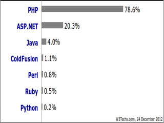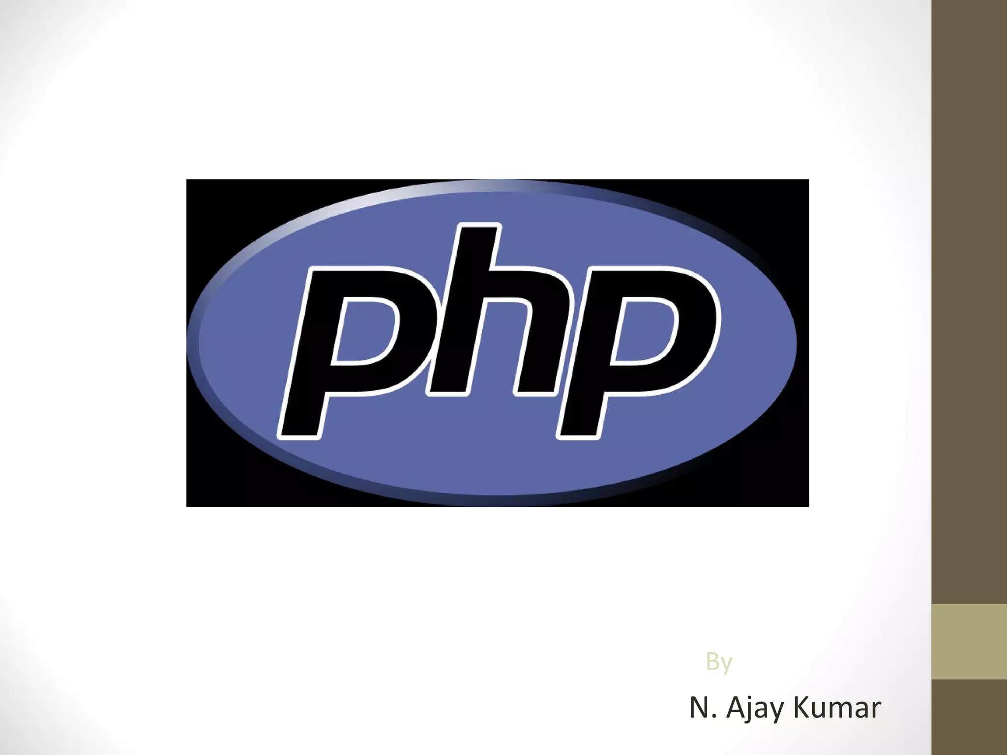 This document provides an overview of PHP, including: